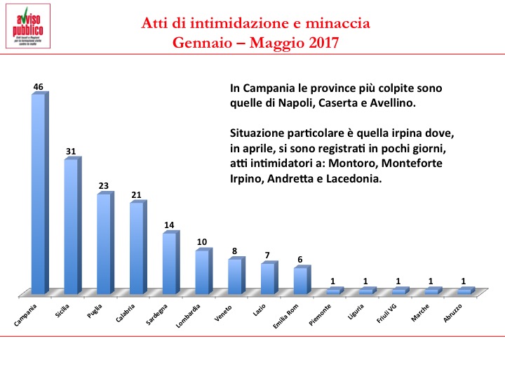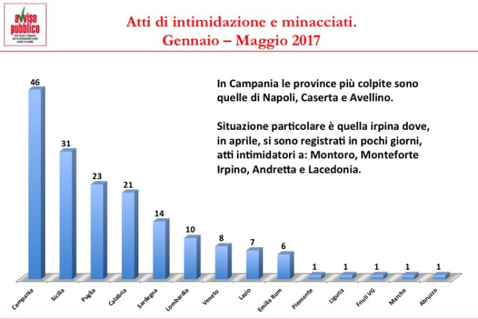 171 atti intimidatori distribuiti in 14 regioni. La Campania sotto assedio, con ben 46 casi censiti.