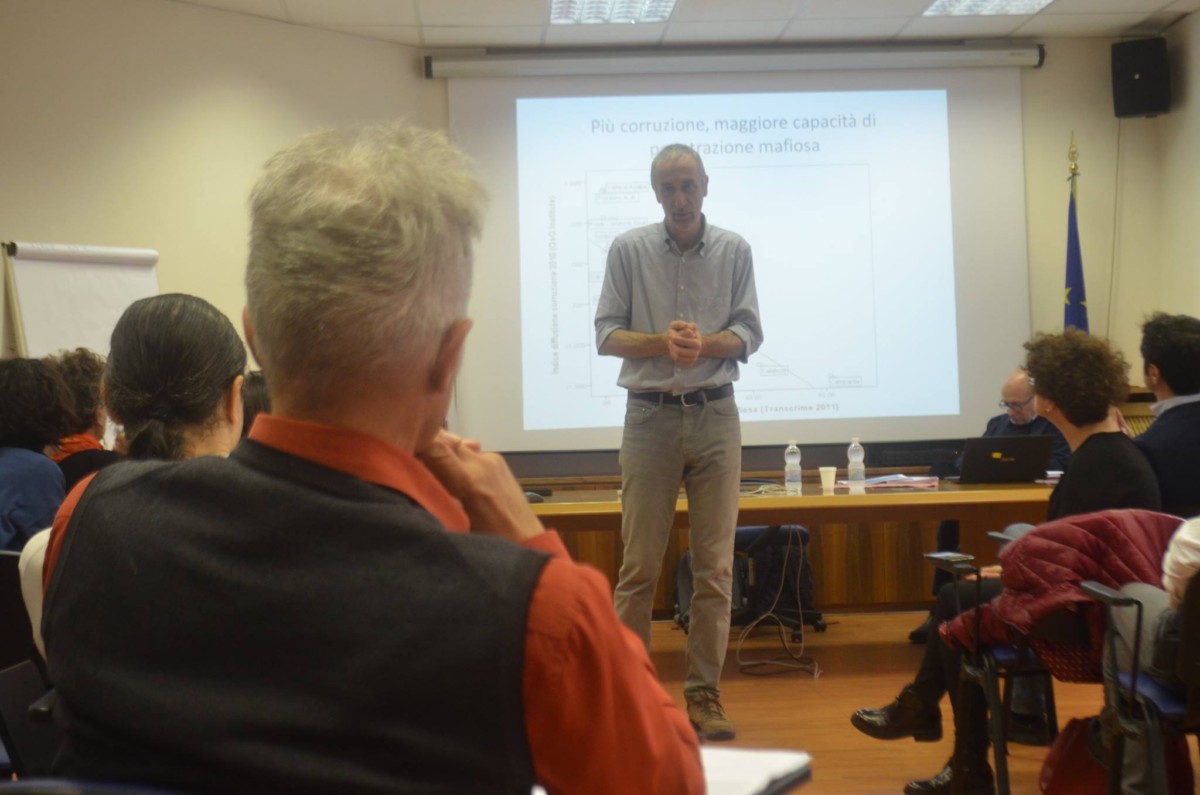 “Quanto viene pagato un voto? – chiede Alberto Vannucci ai presenti, illustrando il concetto di ‘reti della corruzione sistemica’ – 40-50 euro per un’elezione importante. Ma anche per questa fattispecie di voto di scambio vale la legge della domanda e dell’offerta: in certi contesti territoriali, dove l’offerta è elevata perché esistono soggetti economicamente deboli, il prezzo di un voto venduto cala considerevolmente. Ecco, questa è una delle situazioni in cui vengono reinvestite somme ricavate dai circiuti criminali. Diventa evidente come certi tipi di meccanismi