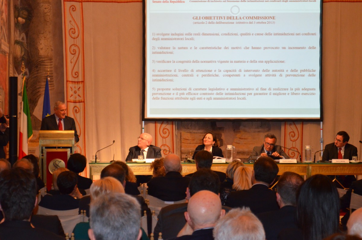 E’ stata presentata ieri, lunedì 13 aprile, al Senato, presso la Sala Zuccari alla presenza del Presidente del Senato, Piero Grasso, la relazione conclusiva dell’inchiesta della Commissione sulle intimidazioni agli amministratori locali.