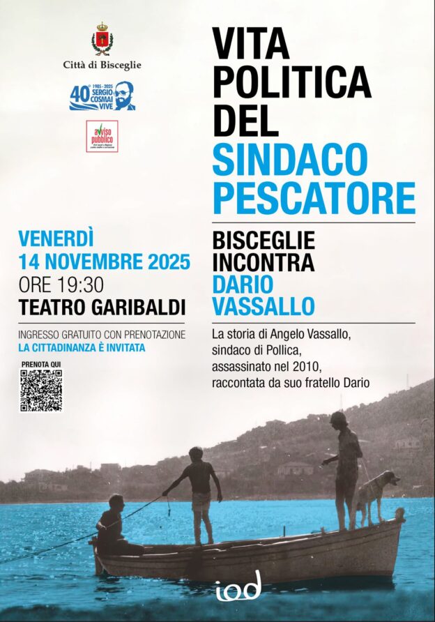 Bisceglie incontra Dario Vassallo, presidente della Fondazione “Angelo Vassallo – Sindaco Pescatore” e autore del libro “Il vento tra le mani. Vita politica del sindaco […]Leggi tutto “Vita del Sindaco Pescatore”, Dario Vassallo racconta Angelo Vassallo al Teatro Garibaldi di Bisceglie