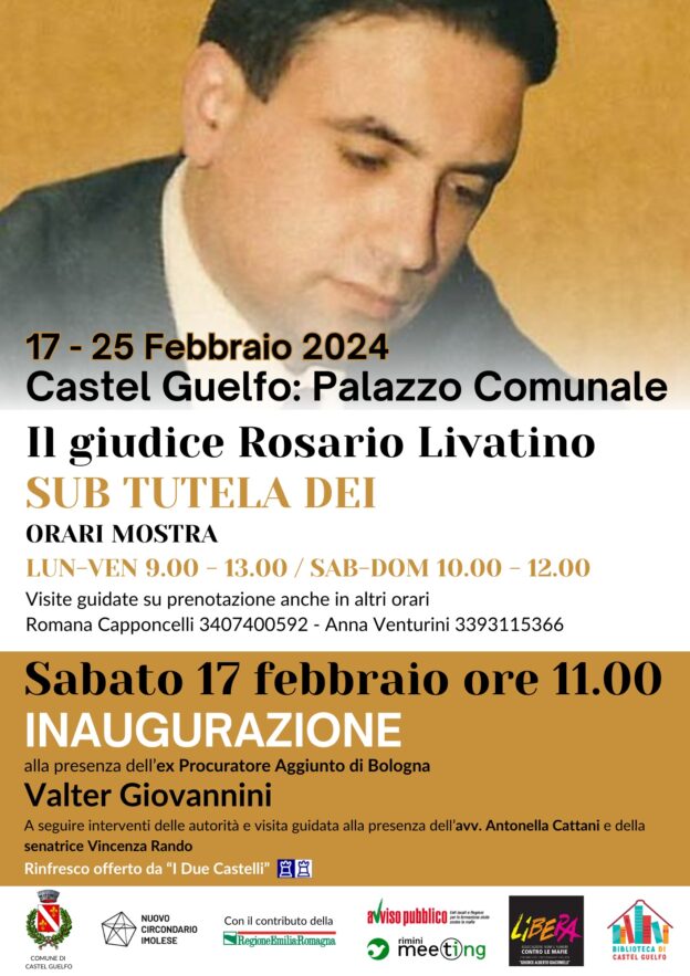 Dal 17 al 25 febbraio il Palazzo comunale di Castel Guelfo, cittadina dell’area metropolitana di Bologna, ospiterà la mostra “Sub tutela Dei” sul giudice Rosario […]Leggi tutto “Sub tutela Dei”: il 17 febbraio a Castel Guelfo l’inaugurazione della mostra su Rosario Livatino