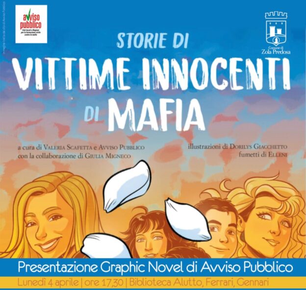 Cristina, Matteo, Marco, Mariangela, Antonio, Annalisa, Claudio sono alcuni dei protagonisti della graphic novel di Avviso Pubblico, scritta da Valeria Scafetta con la collaborazione di […]Leggi tutto “STORIE DI VITTIME INNOCENTI DI MAFIA”: IL 4 APRILE, A ZOLA PREDOSA (BO), LA PRESENTAZIONE DELLA GRAPHIC NOVEL DI AVVISO PUBBLICO