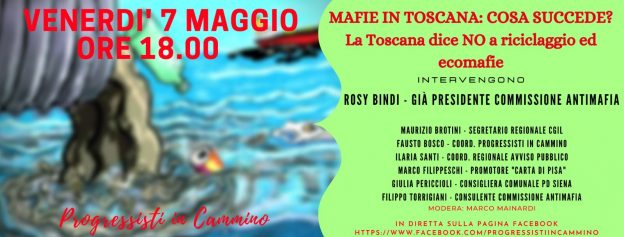 Venerdì 7 maggio, alle ore 18,00, Avviso Pubblico partecipa all’incontro online “Mafie in Toscana: cosa succede? La Toscana dice no al riciclo ed alle ecomafie” […]Leggi tutto “MAFIE IN TOSCANA: COSA SUCCEDE?”: IL 7 MAGGIO AVVISO PUBBLICO PARTECIPA ALL’INCONTRO