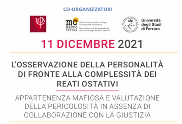 Un convegno organizzato dall’Ordine degli psicologi della Toscana, il Centro Macrocrimes e l’Università di Ferrara e con il patrocinio di Avviso Pubblico, per capire quali […]Leggi tutto REATI OSTATIVI: L’11 DICEMBRE, A FIRENZE, IL CONVEGNO DELL’UNIVERSITA’ DI FERRARA E ORDINE PSICOLOGI TOSCANA