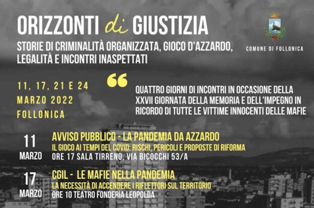 Si apre con la presentazione de “La pandemia d’azzardo – Il gioco ai tempi del covid: rischi, pericoli e proposte di riforma” (Altreconomia, 2021), il […]Leggi tutto “ORIZZONTI DI GIUSTIZIA”: L’11 MARZO, A FOLLONICA (GR), AVVISO PUBBLICO PRESENTA IL LIBRO “LA PANDEMIA D’AZZARDO”