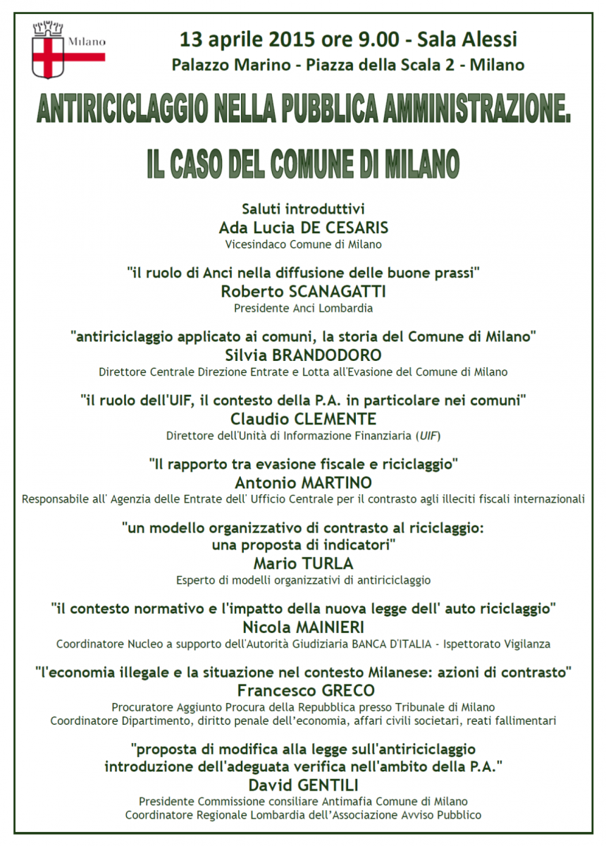Convegno “Antiriciclaggio nella Pubblica Amministrazione. Il caso del Comune di Milano”, Milano, 13 aprile 2015