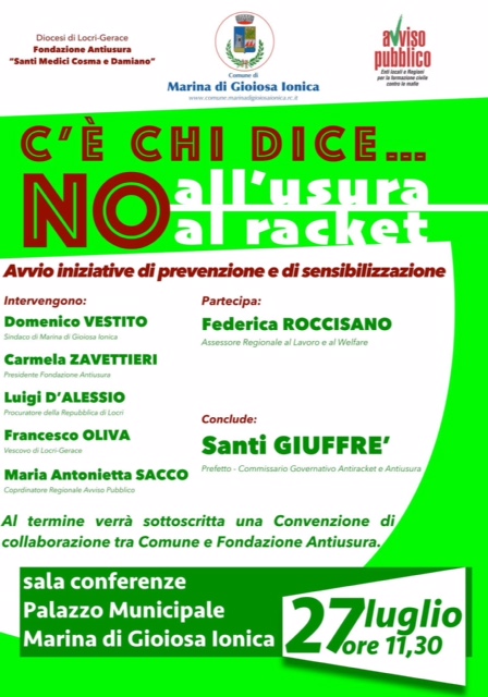 “C’è chi dice no all’usura e al racket”, Marina di Gioiosa Ionica (RC), 27 luglio 2015
