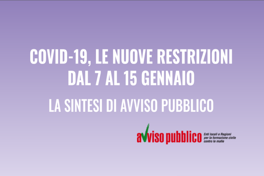 Sono queste le principali misure contenute nel nuovo decreto ‘anti contagio’ che apre il 2021. Qui la scheda elaborata da Avviso Pubblico: