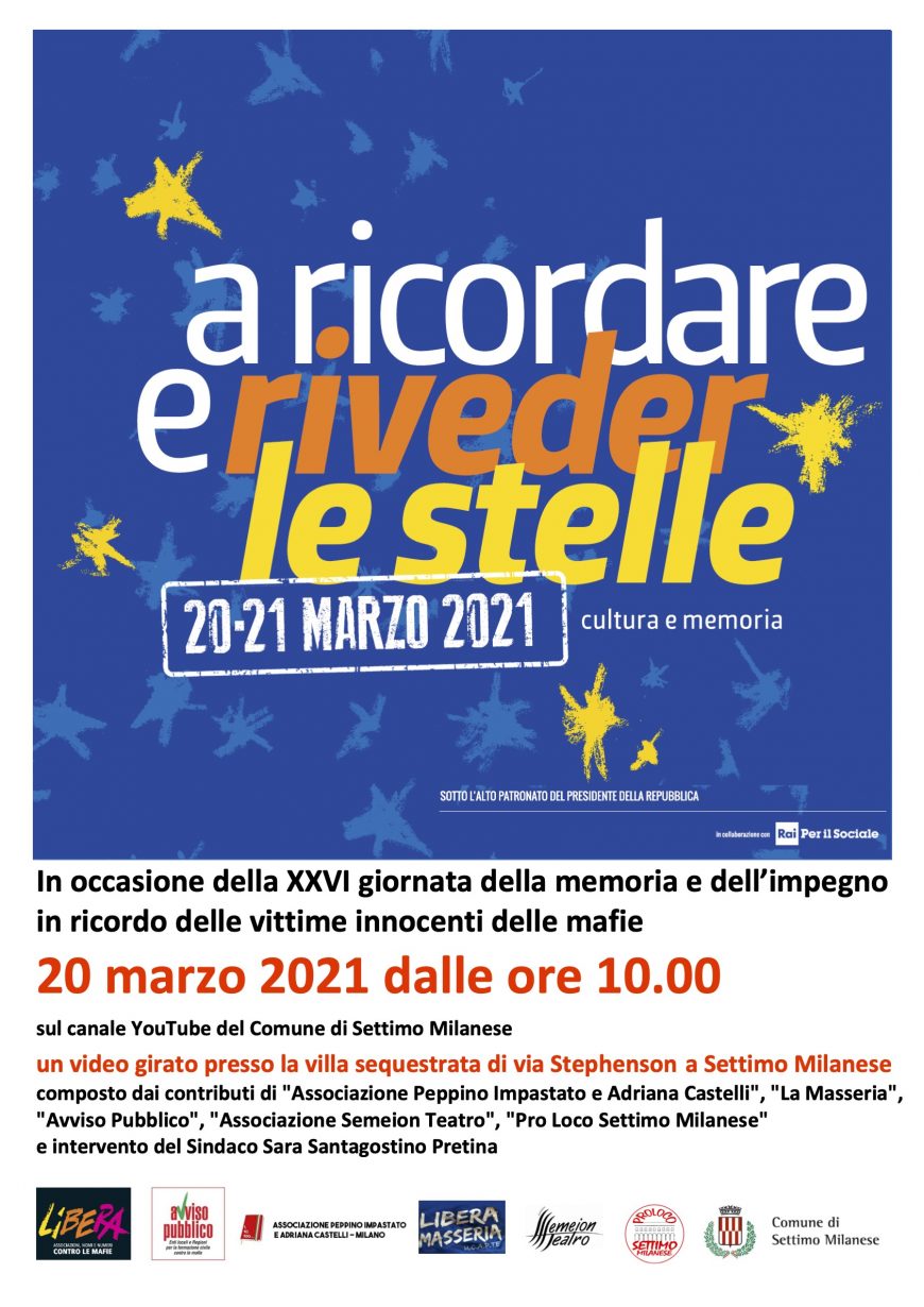 In occasione della celebrazione della XXVI Giornata della memoria e dell’impegno in ricordo delle vittime delle mafie, promossa da Libera e Avviso Pubblico e dal 2017 ufficialmente riconosciuta da una legge dello Stato, il Comune di Settimo Milanese, in collaborazione anche con Avviso Pubblico organizza sabato 20 marzo, alle ore 10.00, in diretta streaming sul sul canale YouTube del Comune di Settimo Milanese un importante incontro di memoria.