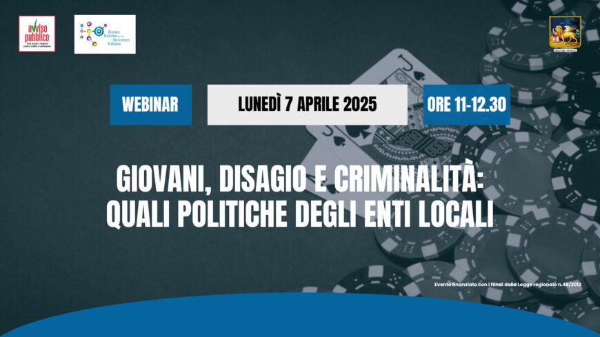 Proseguono gli incontri online sull’impegno delle amministrazioni locali insieme alle istituzioni nella difesa della legalità democratica. Il titolo del prossimo evento è “Giovani, disagio e criminalità: quali politiche degli enti locali”.