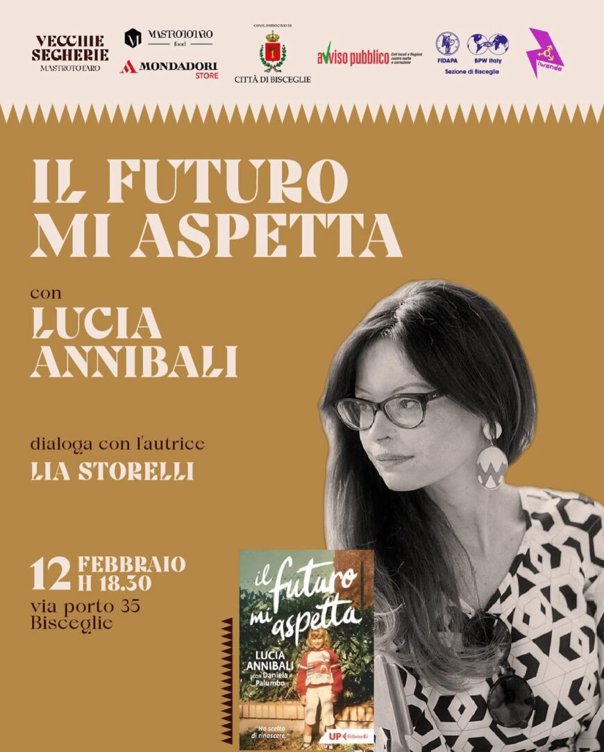 Mercoledì 12 Febbraio, a partire dalle 18:30 in provincia di Barletta-Andria-Trani, la libreria Vecchie Segherie Mastrototaro organizza la presentazione del libro di Lucia Annibali, “Il futuro mi aspetta”.