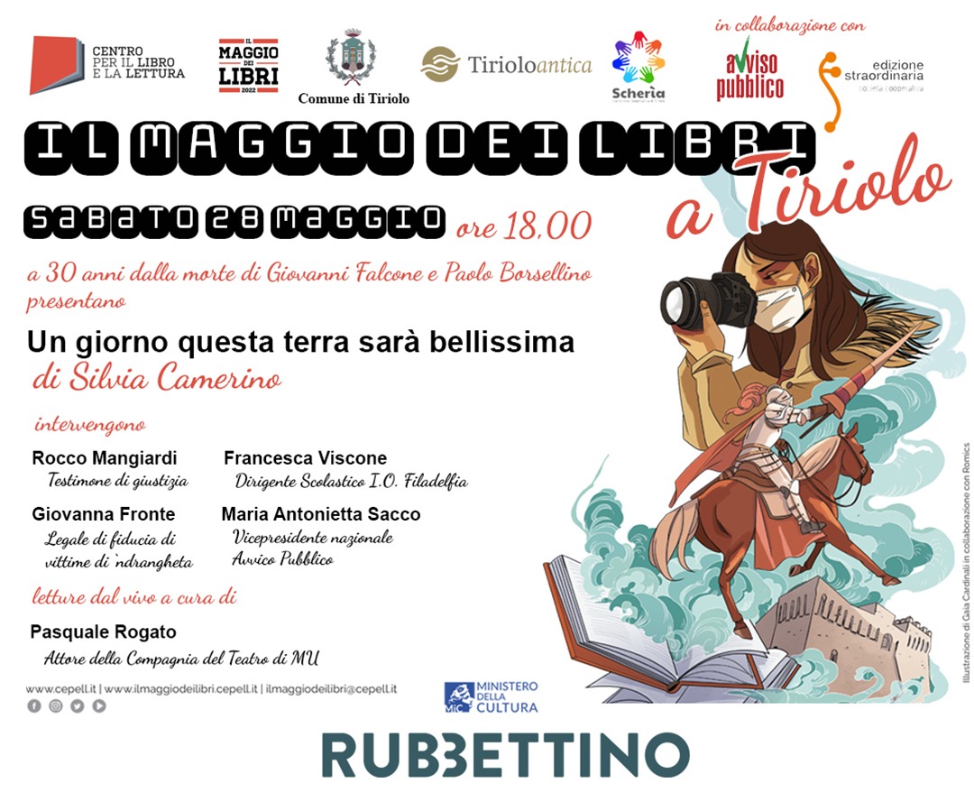 A 30 anni dalla morte di Giovanni Falcone e Paolo Borsellino, il Comune di Tiriolo, in provincia di Catanzaro, ha organizzato per sabato 28 maggio alle ore 18.00, la presentazione del libro “Un giorno questa terra sarà bellissima” (Edizioni Iod, 2021) di Silvia Camerino.