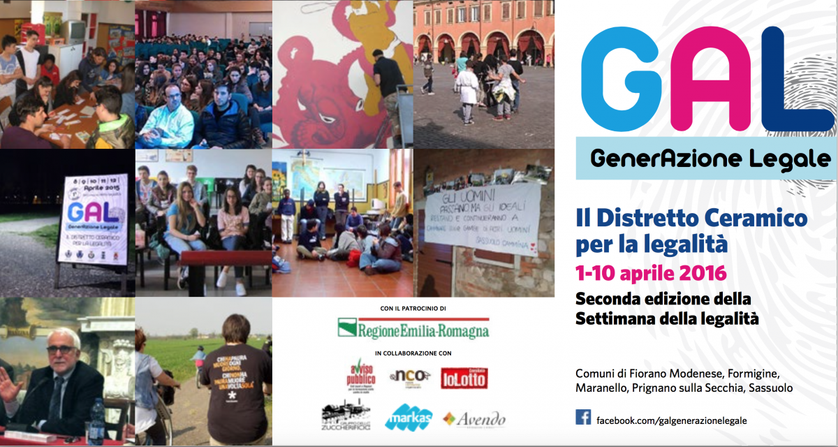 Il primo incontro del percorso di formazione si inserisce all’interno dell’esperienza del Festival “GenerAzione Legale – Il Distretto Ceramico per la legalità”, seconda edizione della Settimana della legalità promossa dall’Unione dei Comuni del Distretto Ceramico, in corso di svolgimento fino al 10 aprile nei territori di Fiorano Modenese, Formigine, Maranello, Prignano sulla Secchia e Sassuolo con il patrocinio della Regione Emilia-Romagna. Una rassegna dedicata al tema della legalità, rivolta a tutta la cittadinanza con una particolare attenzione verso i più giovani, che vede in programma una ventina di appuntamenti tra incontri, conferenze, laboratori, film, musica, teatro, testimonianze e mostre.