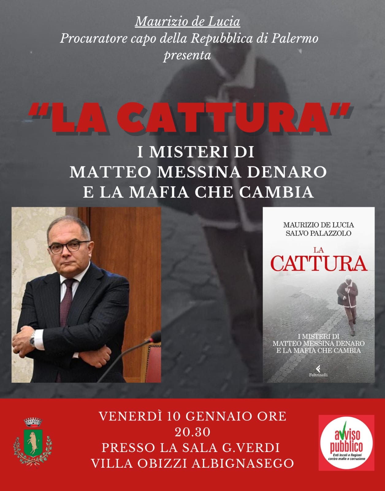 Venerdì 10 gennaio 2025, dalle 20:30 alle 22:00, a Albignasego in provincia di Padova, il Comune di Albignasego organizza l’incontro la presentazione del libro “La cattura – I misteri di Matteo Messina Denaro e la mafia che cambia” di Salvo Palazzolo e Maurizio de Lucia,