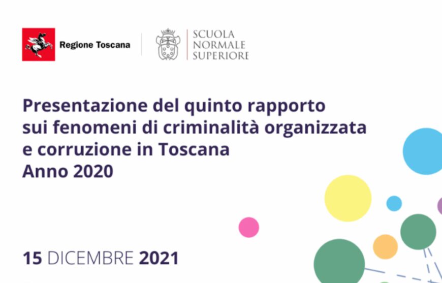 La presentazione della “Quinta Relazione scientifica relativa alla ricerca sui fenomeni di corruzione e di criminalità organizzata in Toscana” si svolgerà in diretta streaming sul canale Youtube della Regione Toscana mercoledì 15 dicembre, dalle ore 10,00 alle ore 13,00.