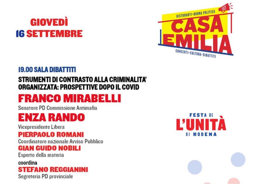 “Strumenti di contrasto alla criminalità organizzata: prospettive dopo il covid“. È questo il titolo dell’incontro promosso dagli organizzatori della Festa dell’Unità provinciale di Modena. L’appuntamento è per giovedì 16 settembre alle ore 19.00 nella Sala dibattiti del festival.