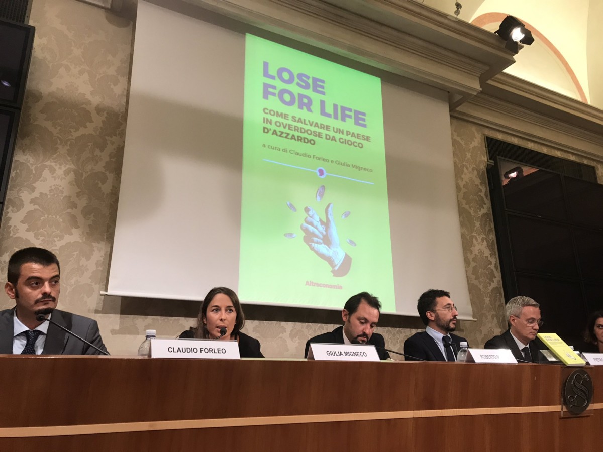 La presentazione, moderata da Pietro Raitano, direttore di Altreconomia, è stata aperta da una dichiarazione di saluto inviata dal sottosegretario all’Economia con delega ai giochi, Pier Paolo Baretta, che ha contribuito alla redazione di Lose for Life con un’intervista rilasciata ai curatori.