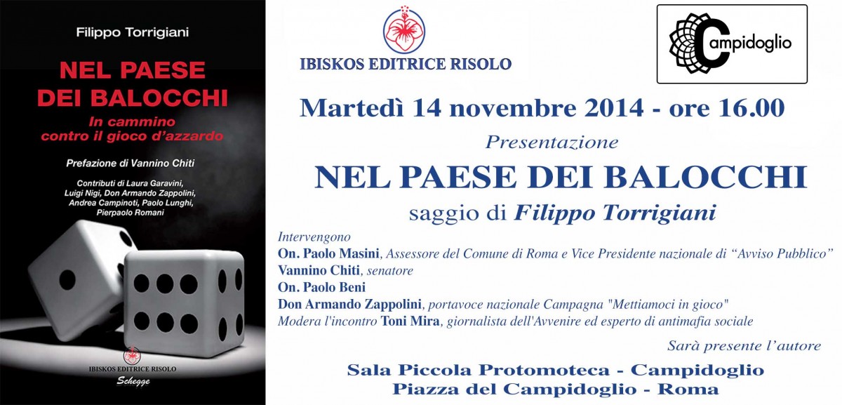 Roma, venerdì 14 novembre, ore 16:00, presso la Sala della Piccola Protomoteca, Piazza del Campidoglio, presentazione del libro “Nel Paese dei Balocchi”.