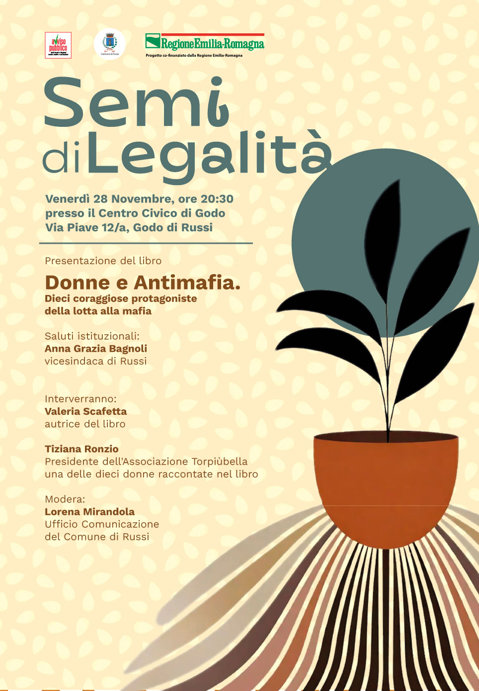 Il Comune di Russi in collaborazione con Avviso Pubblico (a cui il Comune di Russi ha aderito quest’anno), presentano «Semi di Legalità», un percorso culturale ed educativo che accompagnerà la città per i prossimi mesi, grazie al cofinanziamento della Regione Emilia-Romagna nell’ambito delle politiche per la promozione della legalità e della cittadinanza responsabile.