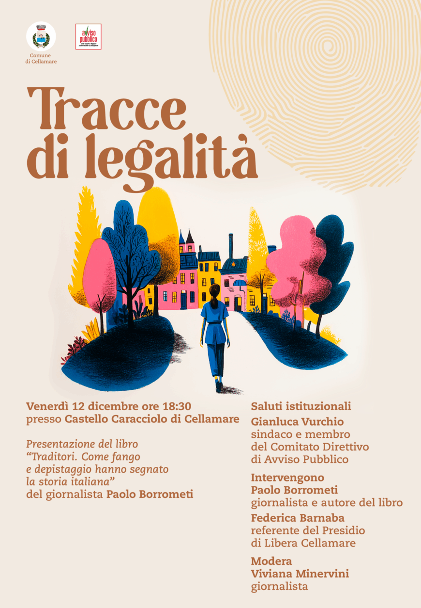 Si svolgerà venerdì 12 dicembre, alle ore 18:30, presso il Castello Caracciolo di Cellamare, l’ultimo incontro della rassegna “Tracce di Legalità”, promossa dal Comune di Cellamare e Avviso Pubblico in collaborazione con il Presidio di Libera Cellamare.