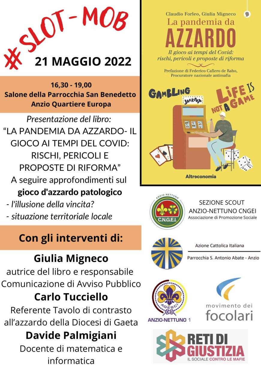 #SLOT-MOB: IL 21 MAGGIO, AD ANZIO, LA PRESENTAZIONE DEL LIBRO DI AVVISO PUBBLICO “LA PANDEMIA DA AZZARDO”