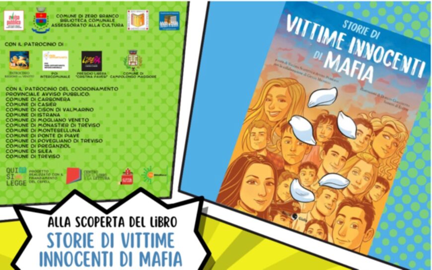 Il Comune di Zero Branco, in provincia di Treviso, organizza per venerdì 28 ottobre, alle ore 20.30, presso l’Auditorium comunale, la presentazione della graphic novel di Avviso Pubblico, “Storie di vittime innocenti di mafia” (BeccoGiallo Editore, 2021), scritta da Valeria Scafetta con la collaborazione di Giulia Migneco, le illustrazioni di Dorilys Giacchetto e i fumetti di Elleni.