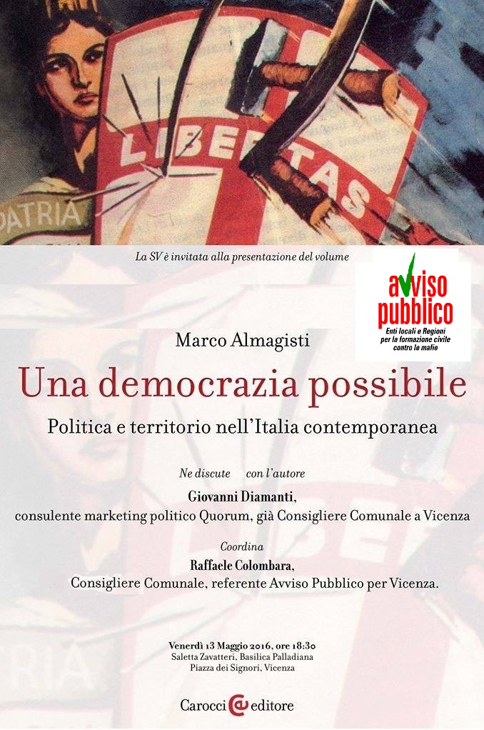 Se ne parlerà a Vicenza, il prossimo 13 maggio 2016, alle ore 18,30, presso la Saletta Zavatteri, Basilica Palladiana (Piazza dei Signori) durante la presentazione del libro Una democrazia possibile. Politica e territorio nell’Italia contemporanea di Marco Almagisti.
